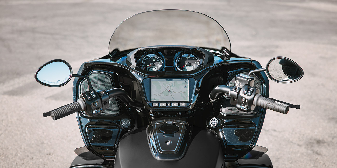 Ride Command® 7-Zoll-Display mit vorinstallierter GPS-Navigation, Apple CarPlay®, Bluetooth®-Konnektivität, konfigurierbaren Anzeigen, Fahrstatistiken und weiteren Funktionen.